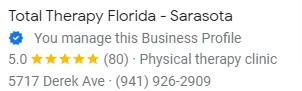 I have gone to many other physical therapy organizations and I have not experienced the "total" professionalism and individual attention that I received from Total Therapy Sarasota!
